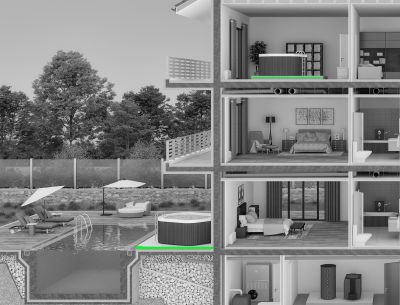 Για την αποφυγή μετάδοσης κτυπογενούς και αερόφερτου θορύβου κατασκευάζεται πλωτό ηχομονωτικό δάπεδο για την έδραση των τζακούζι σύμφωνα με τα παρακάτω βήματα: