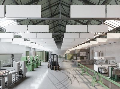 Οι ηχοαπορροφητικές διατάξεις σε μικρούς ή μεγάλους χώρους βιομηχανικών εγκαταστάσεων θεωρούνται απαραίτητες, ιδίως στις περιπτώσεις όπου έχουμε ταυτόχρονη λειτουργία μεγάλου αριθμού εξοπλισμού ή μηχανών. Με σκοπό τη βελτιστοποίηση των αποτελεσμάτων στα μέτρα ηχοπροστασίας και ηχομόνωσης που έχουν επιλεγεί, προτείνεται η τοποθέτηση ηχοαπορροφητικών διατάξεων CLM-ABSORB της CALMA ACOUSTICS, οι οποίες θα καλύπτουν όλες τις απαιτήσεις ακουστικής απορρόφησης αλλά και ασφαλείας (πυροπροστασίας, υγιεινής κ.α.).